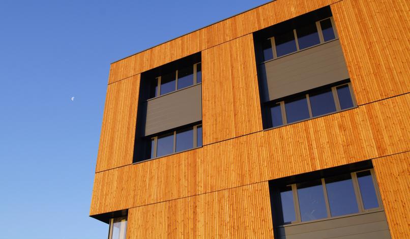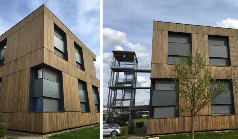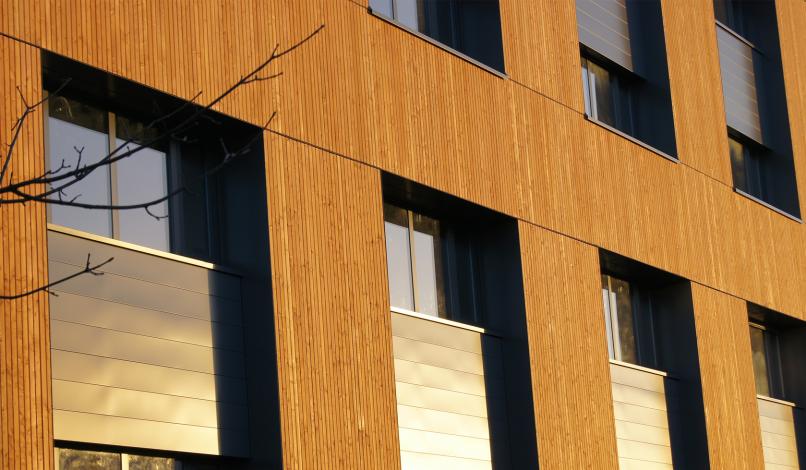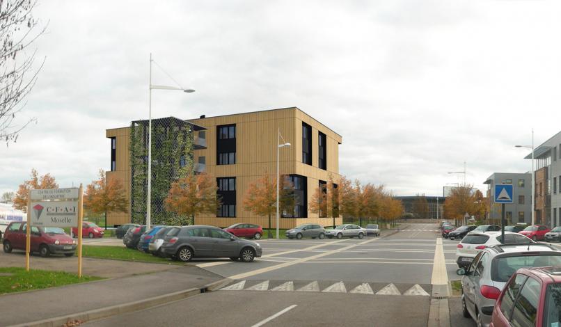 Le projet, qui recevra une labélisation B.B.C. (Bâtiment Basse Consommation) par un organisme agréé, se développe sur 4 niveaux. Afin d’obtenir cette certification, une VMC double-flux par plancher technique sera installée, ainsi qu’une toiture végétalisée assurant une récupération des eaux pluviales Le choix structurel est de type poteaux/poutres avec un remplissage des façades en panneaux bois préfabriqués vêtus de mélèze massif.