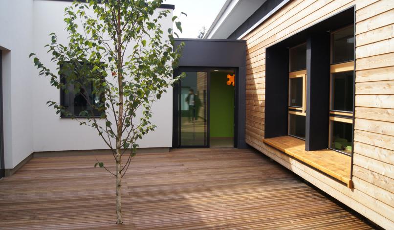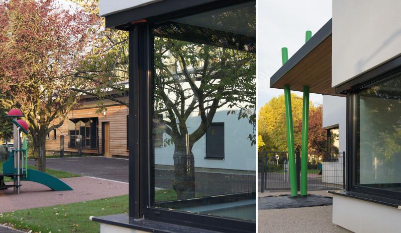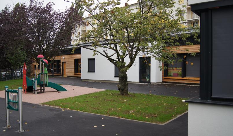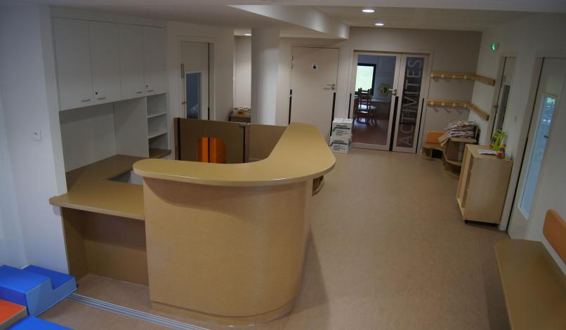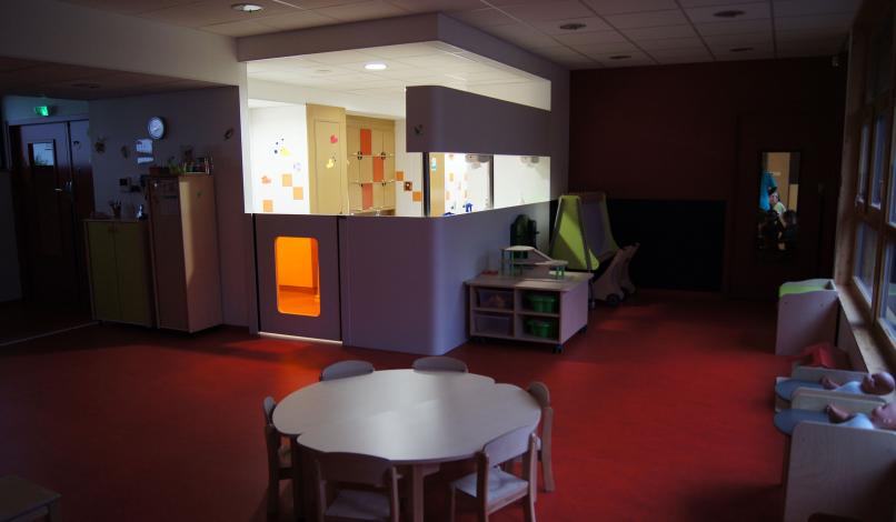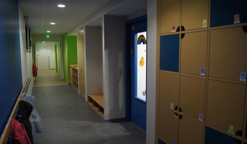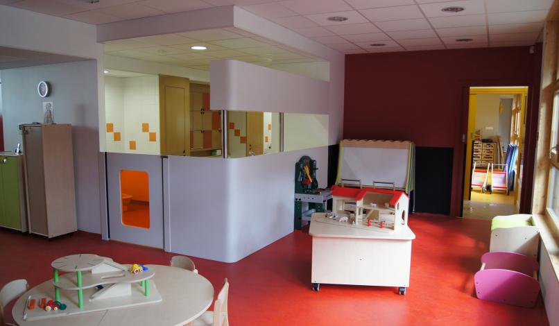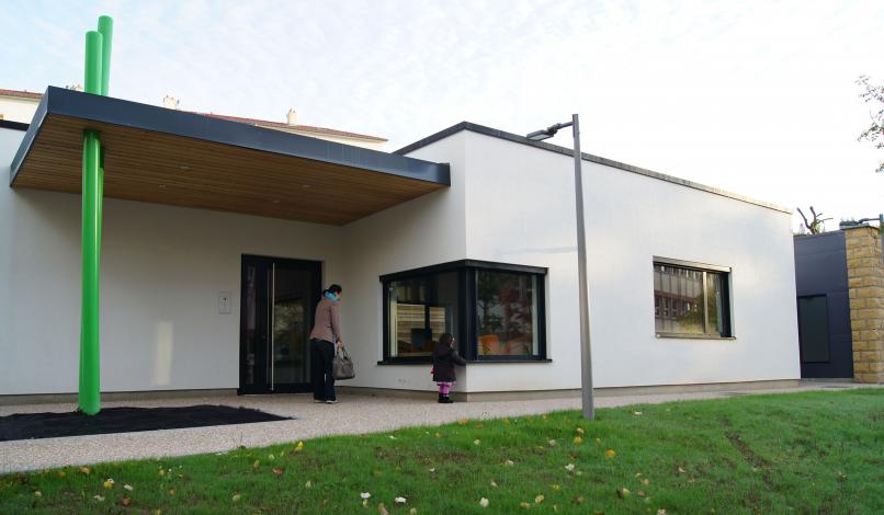Le bâtiment choisi pour réaliser la nouvelle structure multi-accueil "les petits de la Colline" de Thionville est l’ancienne école maternelle St Hubert dans le quartier de la Côte des roses. Celle-ci présente une architecture des « années 60 » semblable à celle des bâtiments publics voisins. Le bâtiment est en « L » en rez-de-chaussée. Les trois unités de vie réalisées, petits, moyens et grands, s’installent dans l’aile la plus longue du bâtiment. Cela permet d’orienter ces espaces au sud et de les ouvrir sur le jardin. La circulation à l’arrière reste nécessaire d’autant qu’elle correspond à une trame porteuse. Une extension a été réalisée pour accueillir le public, la salle de psychomotricité ainsi que les locaux Relais Assistants Maternels.